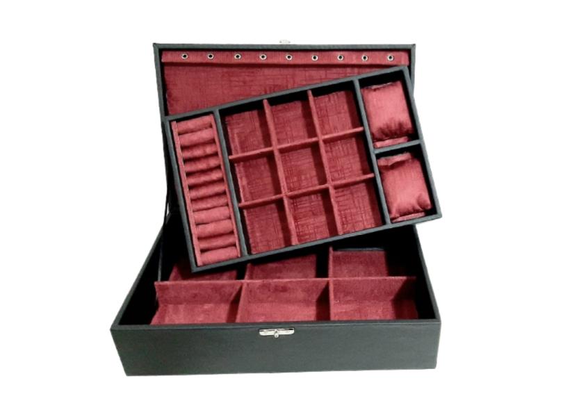 Caixa Maleta Porta Jóias Grande com marsala mdf e PU