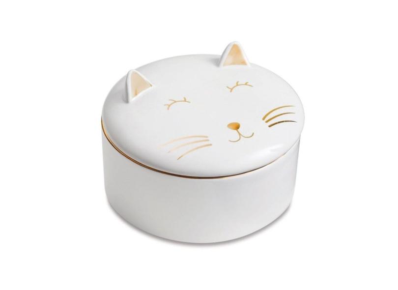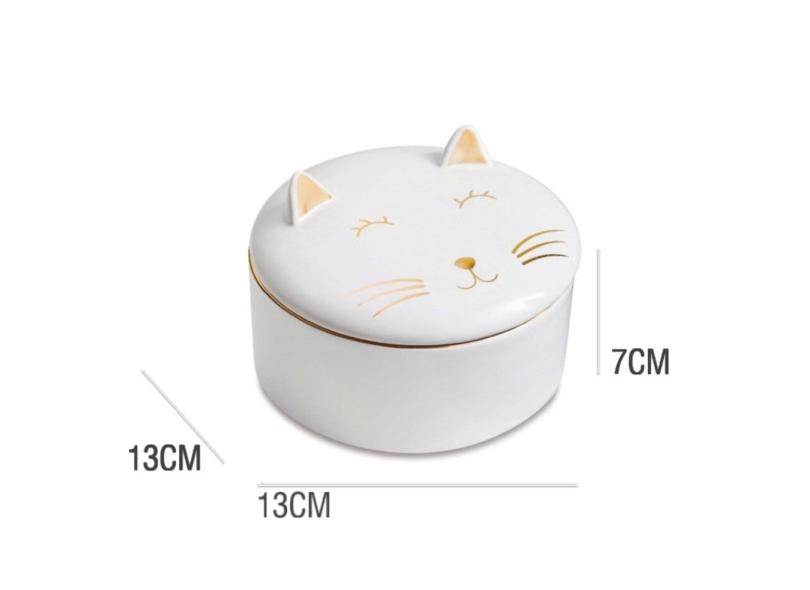 Porta Joia Treco Decorativo Gatinho De Porcelana Redondo