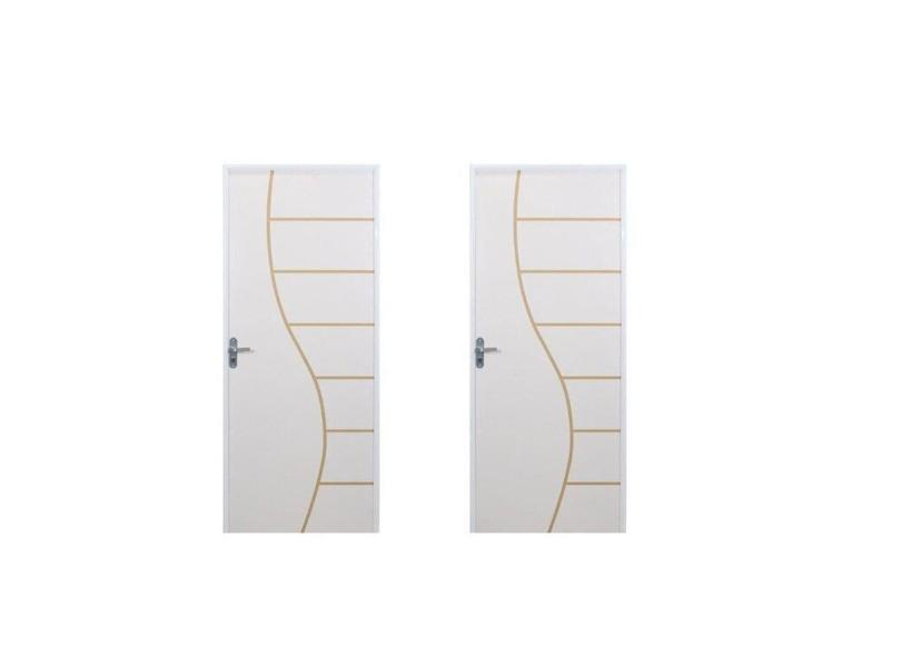 2 Kits Porta de Madeira Decorada 215x75cm com Batente de Aço 06cm Cantareira Branco
