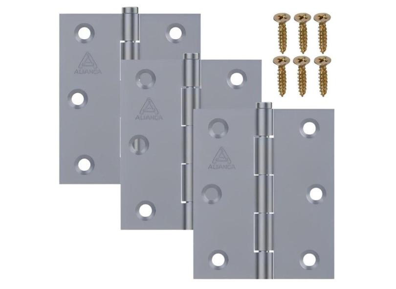 Dobradiça Para Porta Portão Aço Zincado 3.1/2 Pol Kit 03 Un