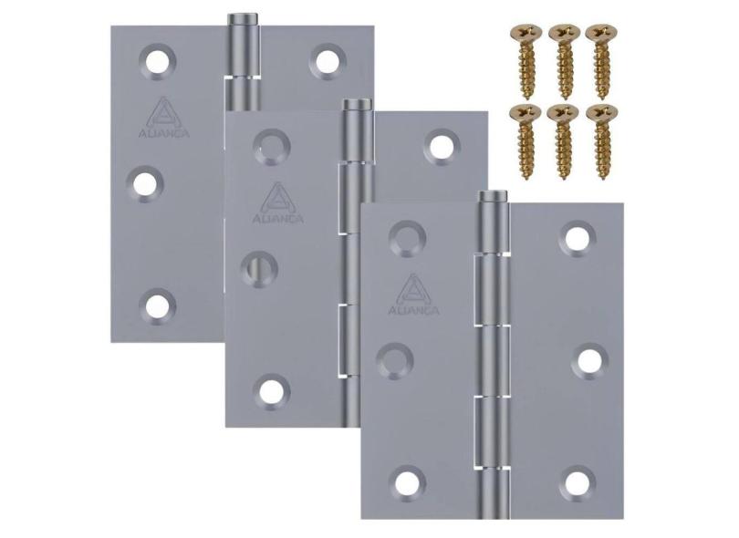 Dobradiça Para Porta Portão Aço Zincado 3.1/2 Pol Kit 06 Un