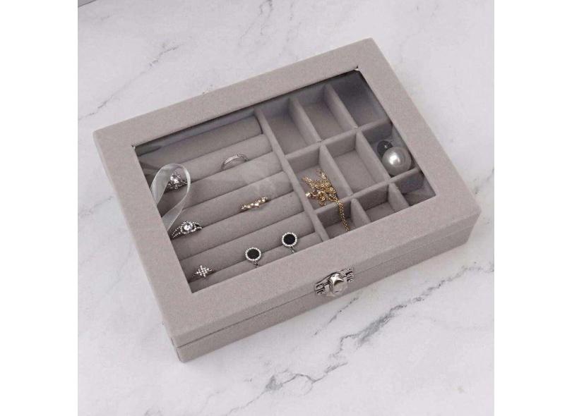Estojo Porta Joias Organizador Tampa Transparente Cinza