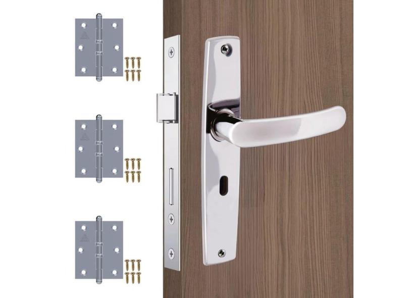 Fechadura Para Porta Interna Aço Inox Cromado + Dobradiças