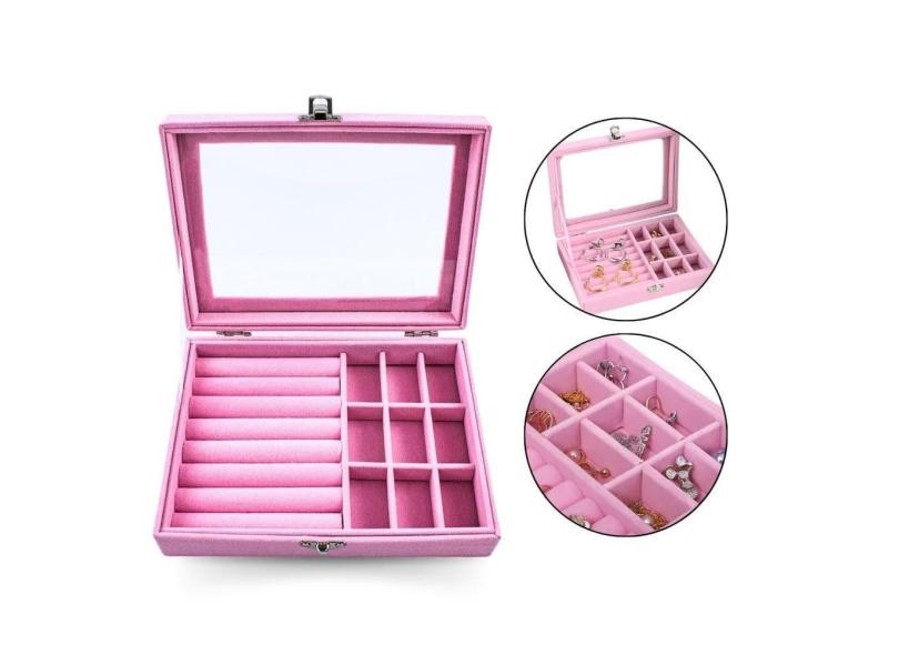 Kit 2 Porta Joia Maleta Luxo Camurça Tampa Acrílica Rosa