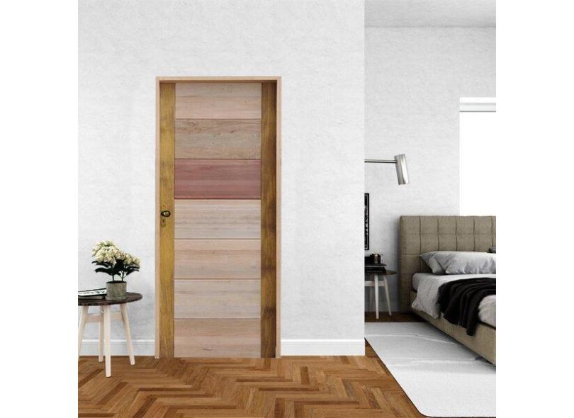 O menor preço encontrado no Brasil para Kit Porta De Madeira 210x72cm Batente 14cm Fechadura Taco De atualmente é R$ 863,98.