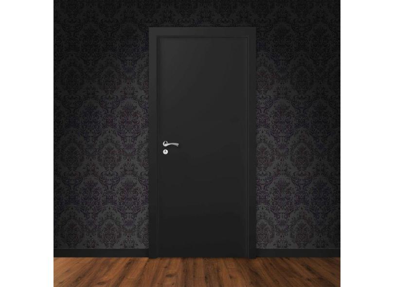 Kit Porta de Madeira 210x80cm Lisa Laqueada Direita Moldufama Preto