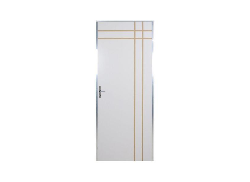 Kit Porta de Madeira Decorada 212x65cm com Batente de Aluminio 3,6cm Mantiqueira MGM Branco
