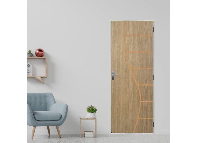 KIt Porta de Madeira Decorada 215x75cm com Batente de Aço 06cm Cantareira MGM Carvalho Alpha