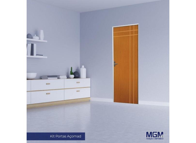 Kit Porta de Madeira Decorada 215x75cm com Batente de Aço 6cm Mantiqueira MGM Mogno
