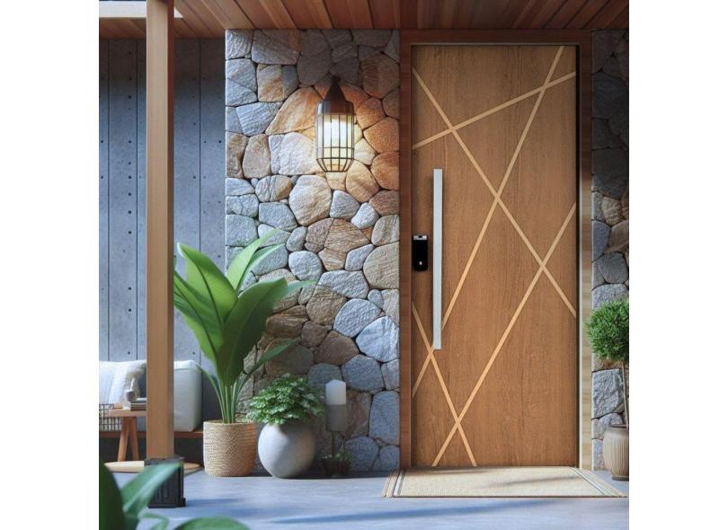 Kit Porta de Madeira Frisada 215,5x96,5cm Batente 14cm Fechadura Digital e Puxador Rodam