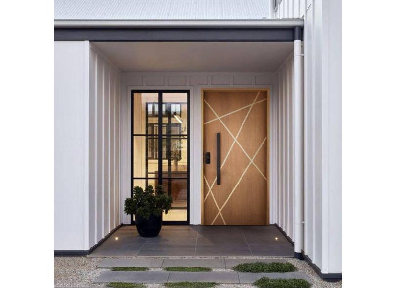 O menor preço encontrado no Brasil para Kit Porta de Madeira Frisada 215x117cm Batente 14cm Fechadura Digital e Puxador Rodam Portas Marrom atualmente é R$ 1.824,98.