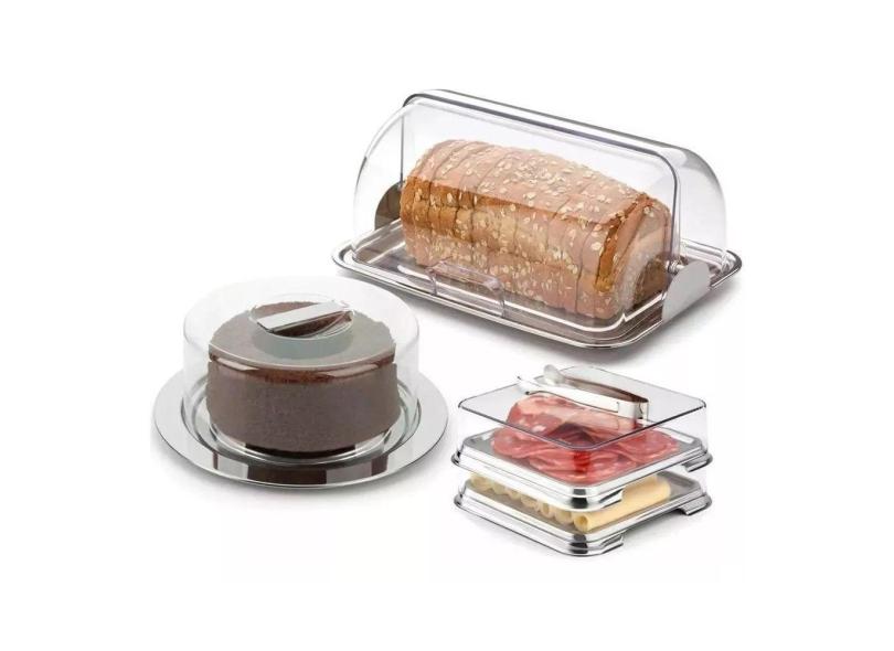 O menor preço encontrado no Brasil para Kit Porta Pão, Porta Frios E Boleira Inox Tampa Pinça Forma atualmente é R$ 385,51.
