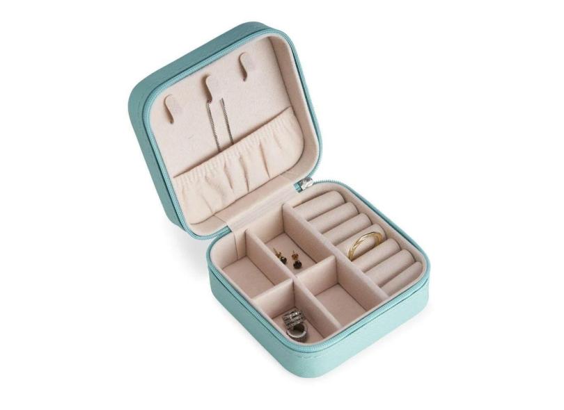 Mini Porta Jóias Couro Aveludado Caixa Brinco E Anel Verde