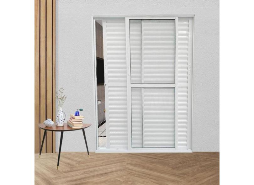 Porta Balcão de Alumínio 3 Folhas Móveis 210 x 160cm com Fechadura Linha 25 Esquadrias Bergame Branco