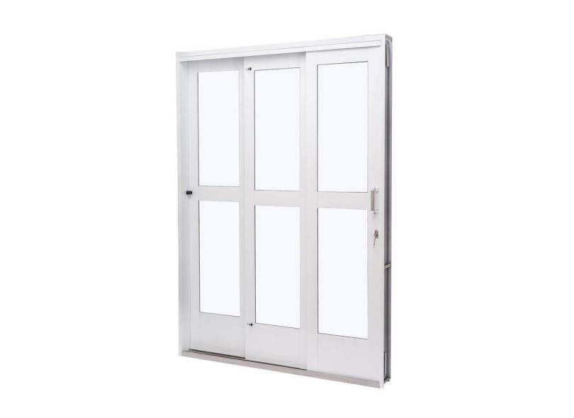 Porta de Aço de Correr 215x200cm 3 Folhas Vidro Liso Qualitysol Ramassol Branco