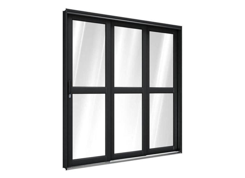 Porta de Aço de Correr Lateral com Travessa 3 Folhas 213x150cm Aço Pronto Riobras Preto