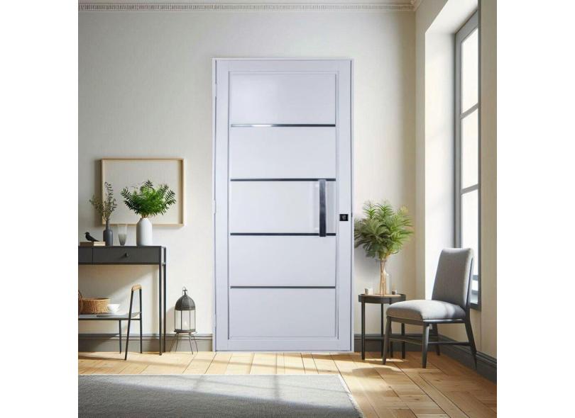 Porta de Aço Social Slim 215x95cm com Puxador Pequeno Ideal Crv Esquadrias Branco