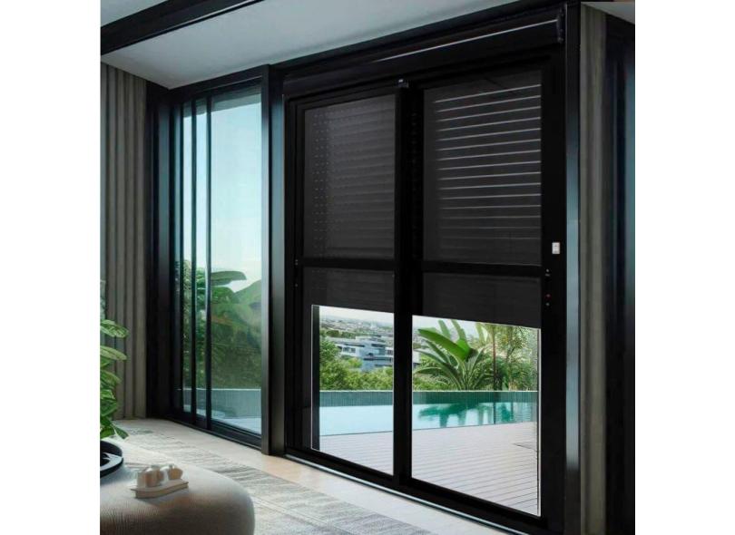 Porta de Aluminio Integrada Automatica 220v 231x150cm 2 Folhas Preto