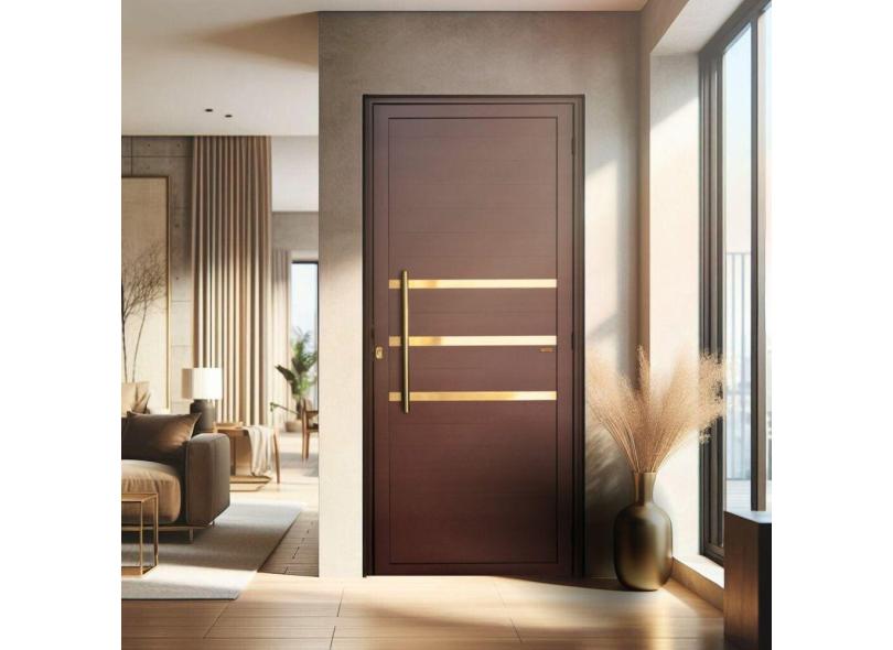 Porta de Aluminio Lambril 210x100cm Frisada com Puxador Super Brimak Marrom Corten Dourado