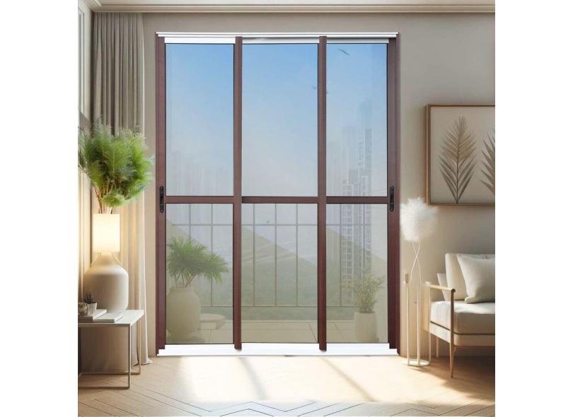 Porta de Correr 3 Folhas Moveis Sequenciais 210 X 150 Elite com Fecho Automático Vidro Reflex Mix Corten