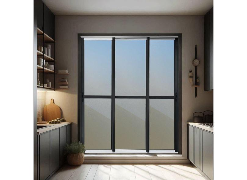 Porta de Correr 3 Folhas Moveis Sequenciais 210 X 200 Elite com Fechadura Tetra Vidro Reflex Mix Preto