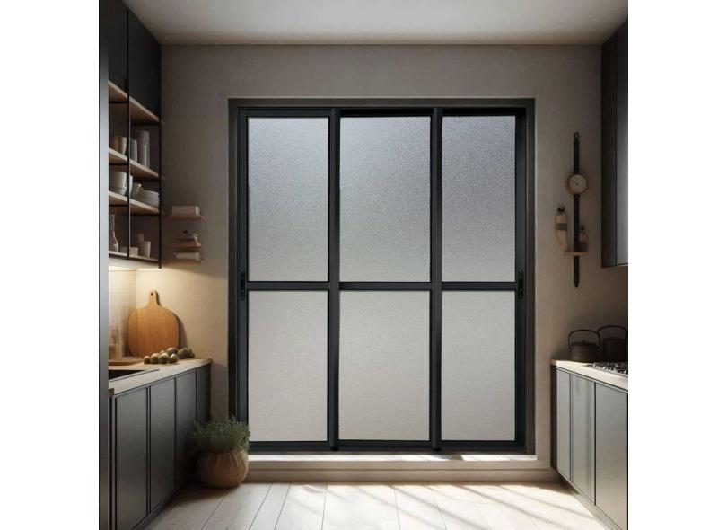 Porta de Correr 3 Folhas Moveis Sequenciais 210 X 200 Elite com Fecho Automático Vidro Liso Preto