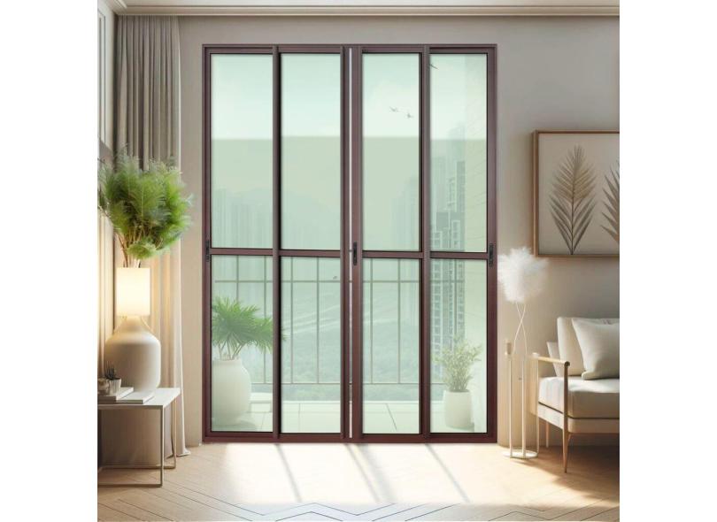 Porta de Correr 4 Folhas Moveis 210 X 200 Elite com Fecho Automático Vidro Liso Corten