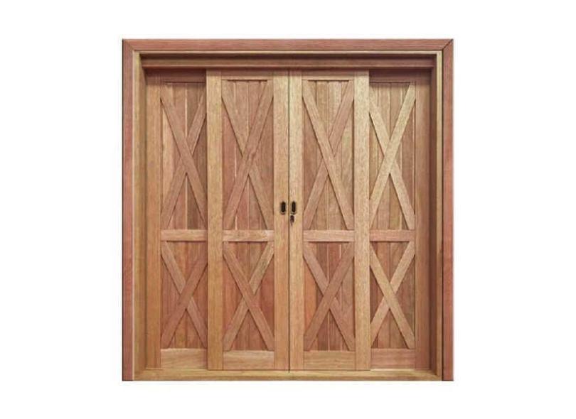 Porta De Correr Ch cara 4 Folhas Em Madeira Maci a Cedro Aran