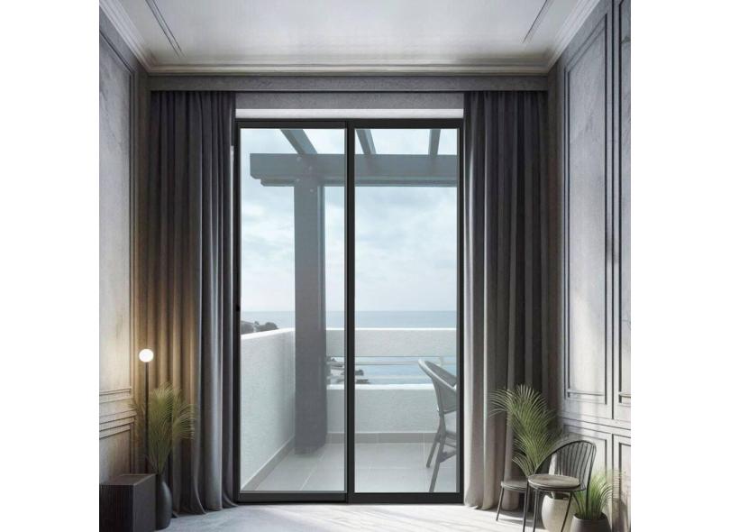 Porta de Correr de Aluminio 210x160cm 2 Folhas Moveis e 1 Folha Fixa Preto
