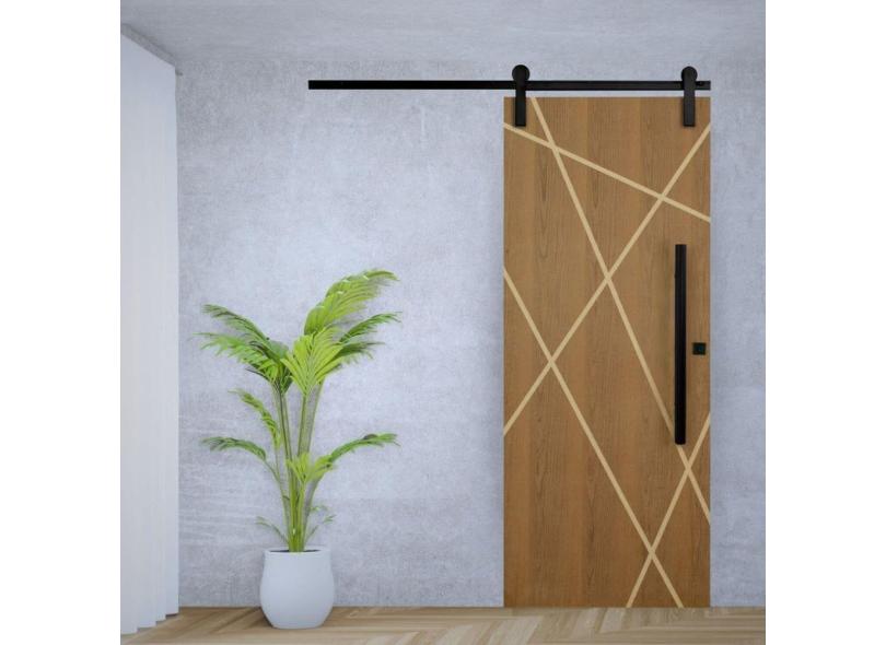 Porta de Correr Padrão Imbuia Agatha Trilho Soft Puxador Tubolar 800 Mm 120 X 210 Direito Natural