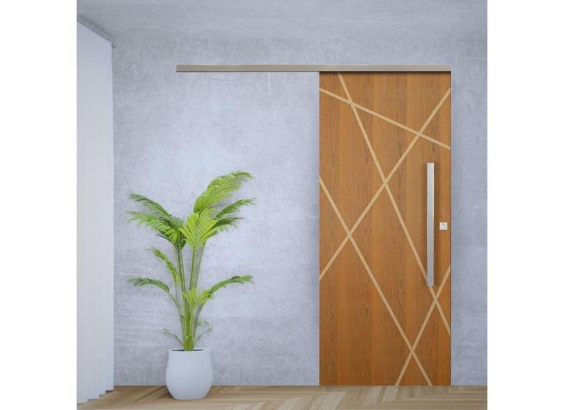 Porta de Correr Padrão Imbuia Agatha Trilho Vision Puxador Barra Chata 800 Mm 110 X 210 Direito Natural