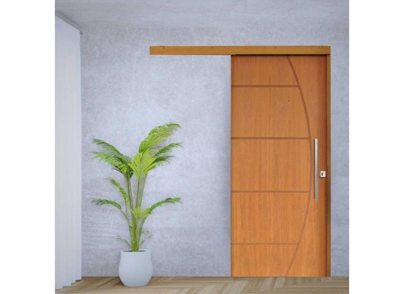 Porta de Correr Padrão Imbuia Belissima 6 Trilho Embutir Puxador Tubolar 800 Mm Cromado 110 X 210 Es Natural