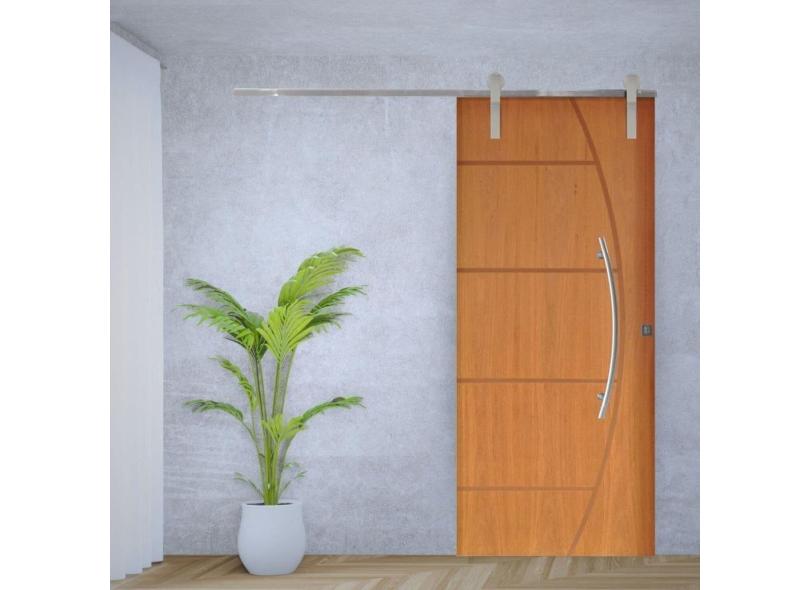 Porta de Correr Padrão Imbuia Belissima 6 Trilho Soft Puxador Curvo 600 Mm Cromado 82 X 210 Direito Natural