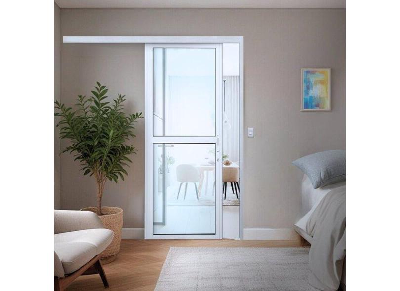 Porta De Correr Suspensa De Aluminio 215x100cm Com Vidro Temp