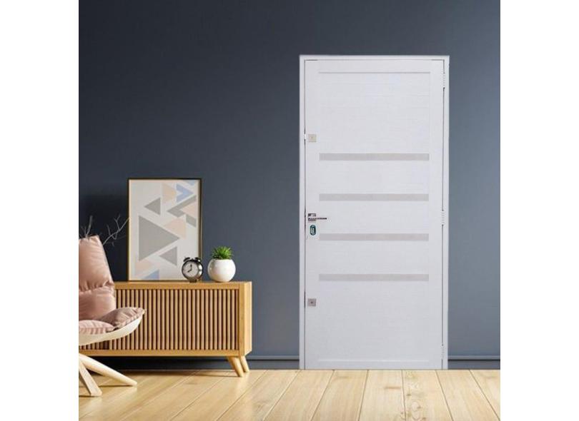 Porta Lambril com Maçaneta 2 Fechaduras Tetras com Friso Linha Roma 210x100 Lado Direito Branco