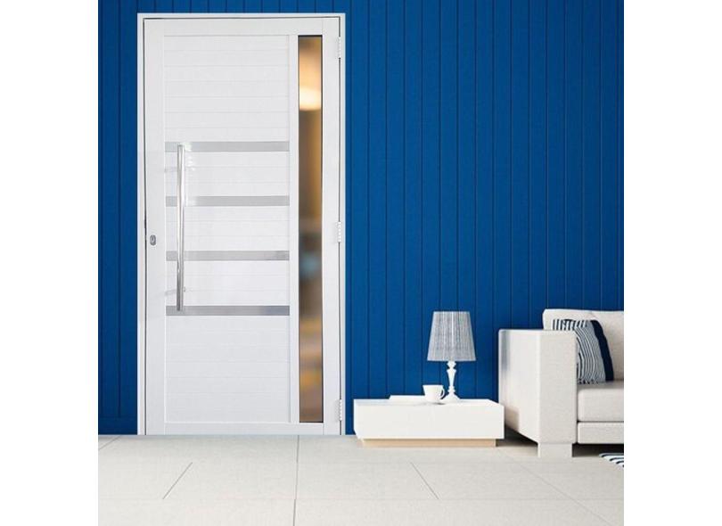 Porta Lambril de Alumínio 210 x 90cm com Friso e Visor Linha 30 Lado Esquerda Branco