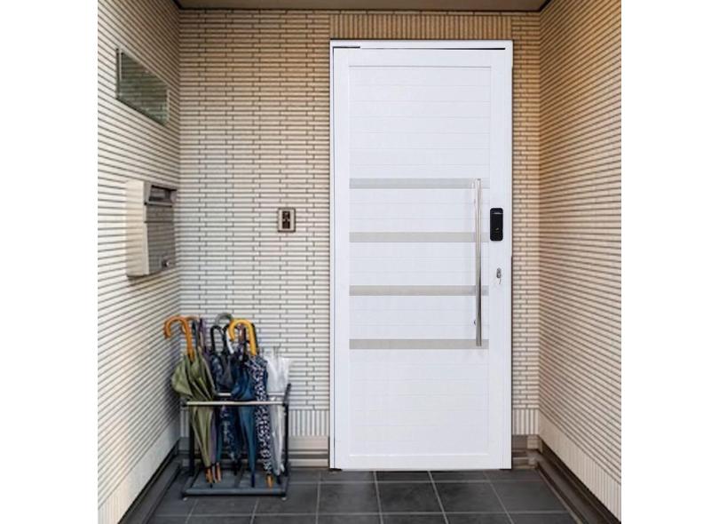Porta Pivotante de Alumínio 210 x 100cm com Friso e Fechadura Digital Linha 30 Esquerda Branco