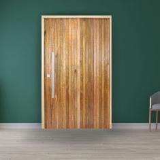 Porta Pivotante Ripada Cedro Batente 14 Puxador Barra Chata 102 X 210 Esquerdo Natural