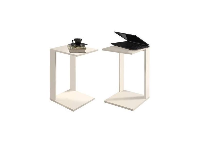 Porta Revistas 2 Mesinhas Lateral Canto Retro Off White 65cm - Colomi