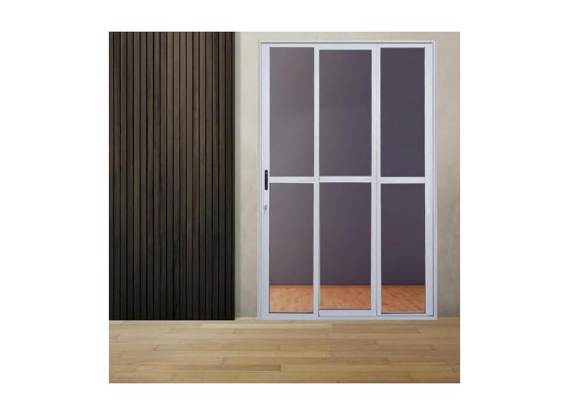 Porta Sacada de Alumínio 3 Folhas Sequenciais 210 x 200cm com Fechadura Linha 25 Branco