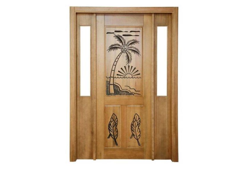 Portal Madeira Maci a Vitr Duplo Palmeira Entalhada Completa