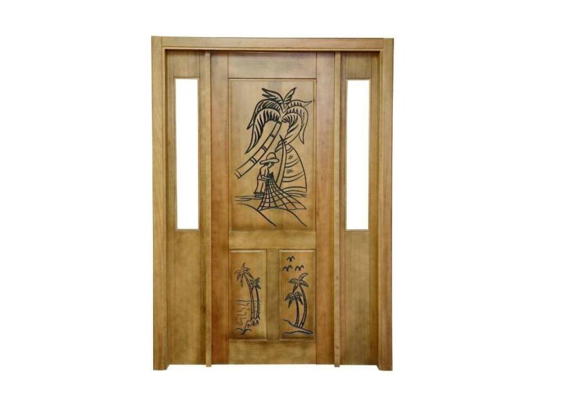 Portal Madeira Maciça Vitrô Duplo Pescador Entalhada Completa 153x213x16cm Cedro Rosa Marrom