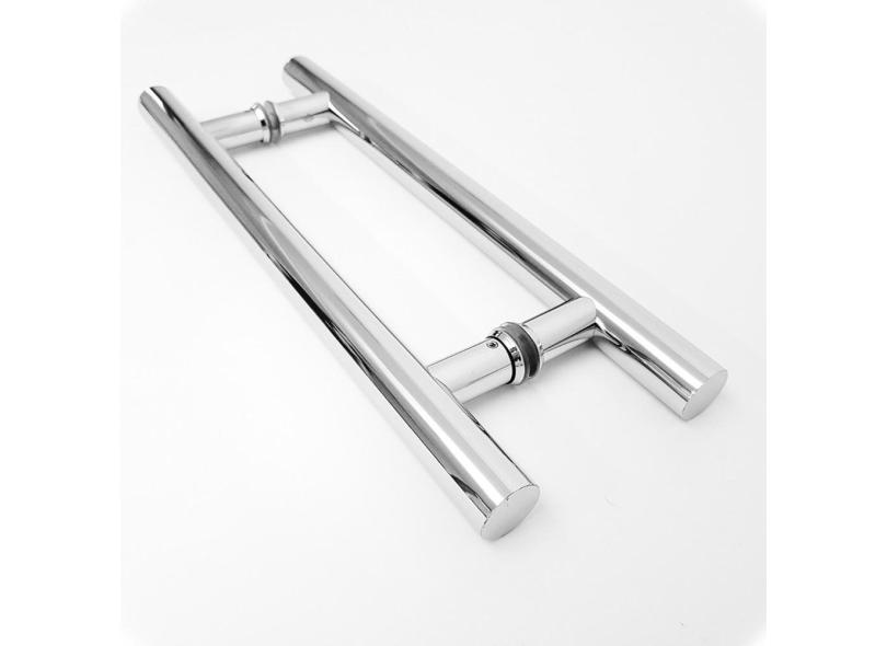 Puxador H Tubular em Inox Duplo Para Porta De Madeira Ferro Vidro Mdf 40cm Cromado