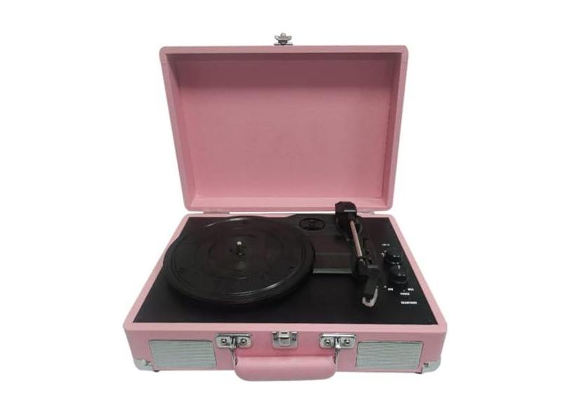Toca-discos de vinil, mala portátil, toca-discos com alto-falantes embutidos e receptor Bluetooth, toca-discos vintage de 3 velocidades, som de áudio, toca-discos retrô para entretenimento 4