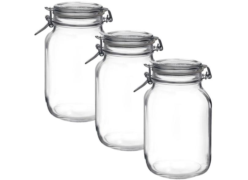 Kit 3 Potes Vidro Hermético Fido 2 Litros Vedação Borracha