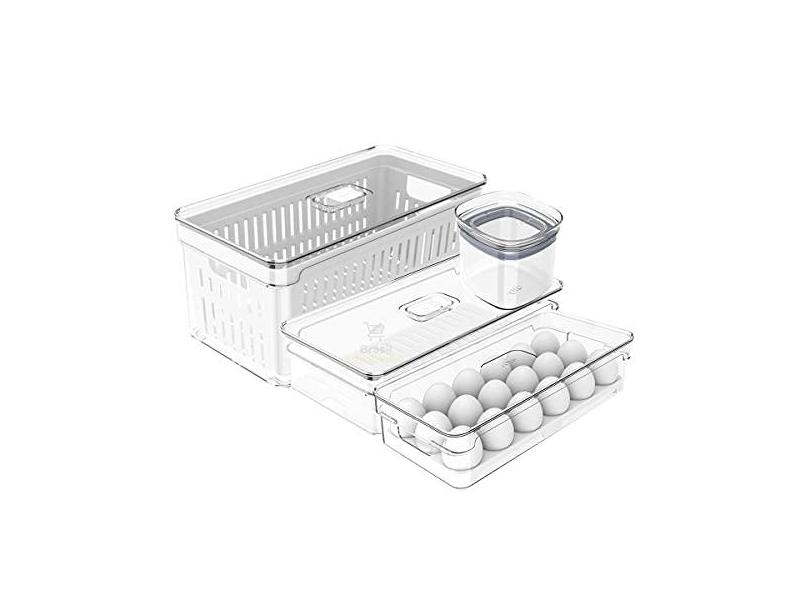 Kit 4 Peças Organizadores de Geladeira e Pote Hermético Ou