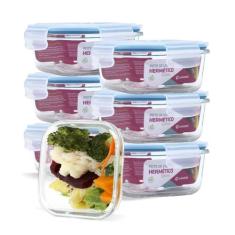 Kit Conjunto 7 Potes Vidro Hermético Tampa Plástico Marmita Mantimentos 370ml