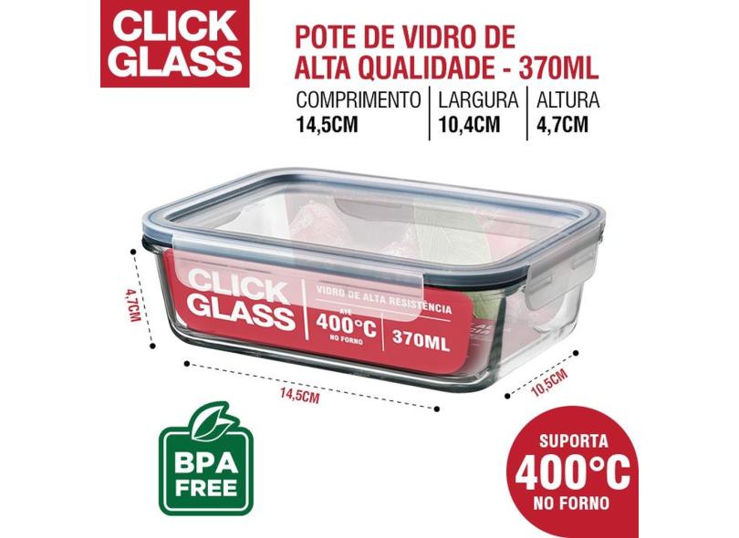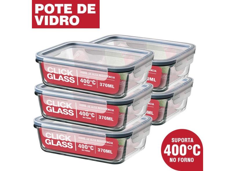 Kit Premium Click Glass 5 potes de vidro 100% herméticos
