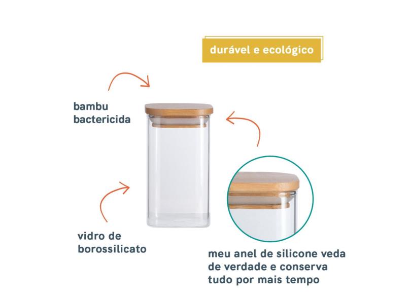 Pote de Vidro Quadrado 250ML com Tampa de Bambu Flat - Oikos