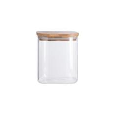 Pote de Vidro Quadrado 800ML com Tampa de Bambu Flat - Oikos